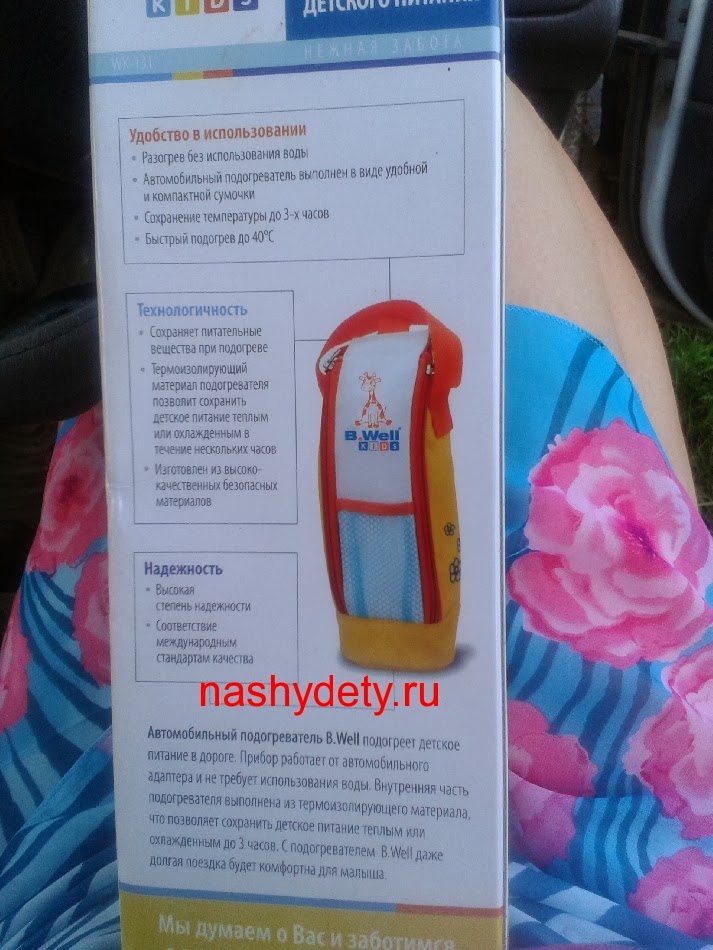 Теперь опишу своими словами. Небольшая сумочка для одной бутылочки с молоком. Подключается легко и быстро в автомобильный адаптер. Изнутри специальная отделка. Поставили холодное что-то - останется холодным. Подключили к адаптеру - быстро разогреет до 40 градусов. Выключили. Покормили малыша. Свернули и едем дальше. Очень лёгкий.